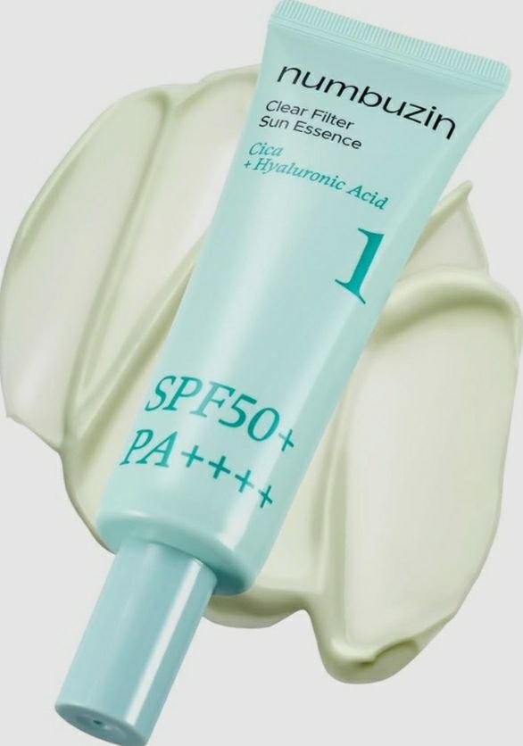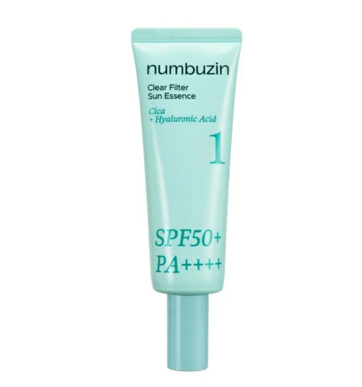 Numbuzin No.1 Clear Filter Sun Essence SPF50+ PA++++ — легкая солнцезащитная эссенция с водой солодки (20,55%) и центеллой (15%) защищает от UVA/UVB, успокаивает кожу без налета.