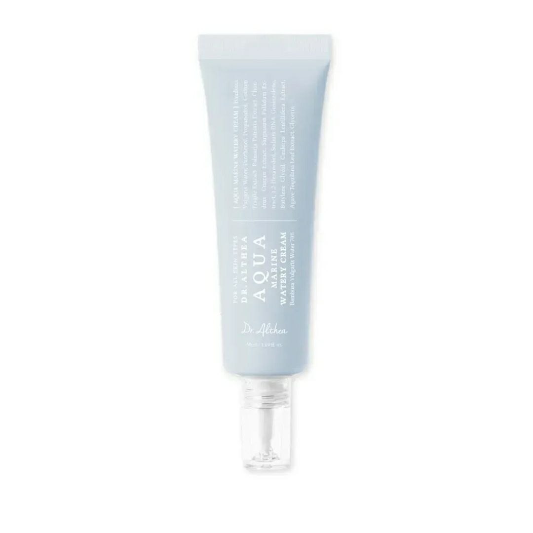 Dr. Althea Aqua Marine Watery Cream — легкий гель-крем с 70% бамбуковой водой и PDRN интенсивно увлажняет, успокаивает и восстанавливает барьер. Пантенол снимает покраснения, 10 видов HA наполняют кожу влагой, морские экстракты придают сияние. Быстро впитывается без липкости.