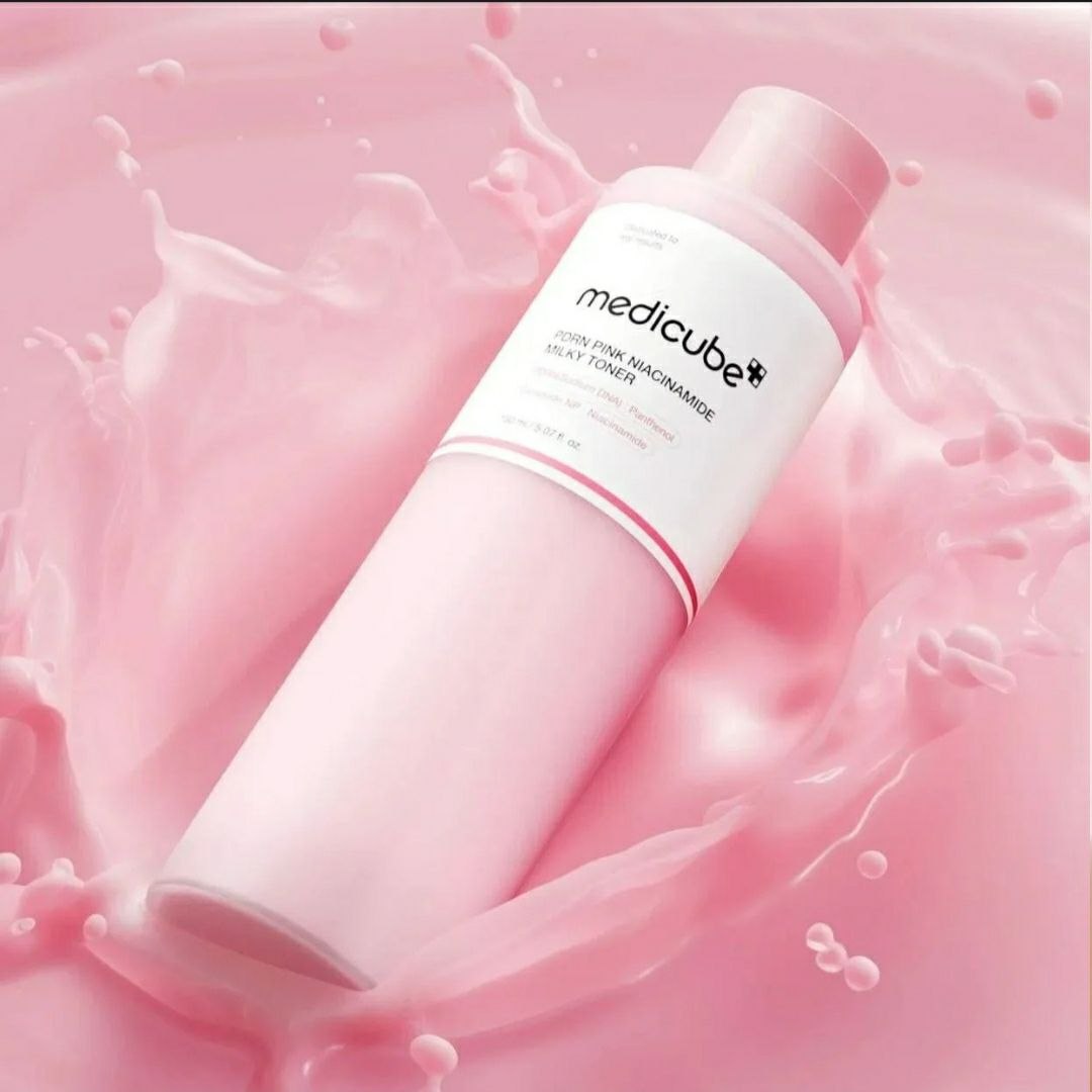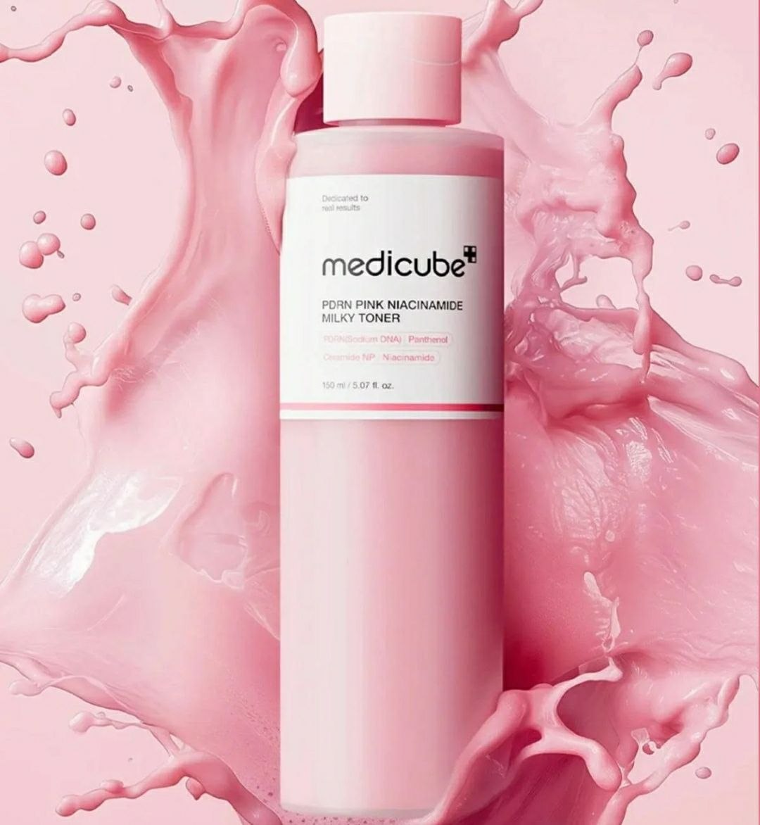 Medicube PDRN Pink Niacinamide Milky Toner — молочная текстура с PDRN и 5% ниацинамидом глубоко увлажняет и восстанавливает барьер. Ниацинамид осветляет пигмент, церамиды укрепляют кожу, пептиды повышают упругость. Идеально для сухой и тусклой кожи.