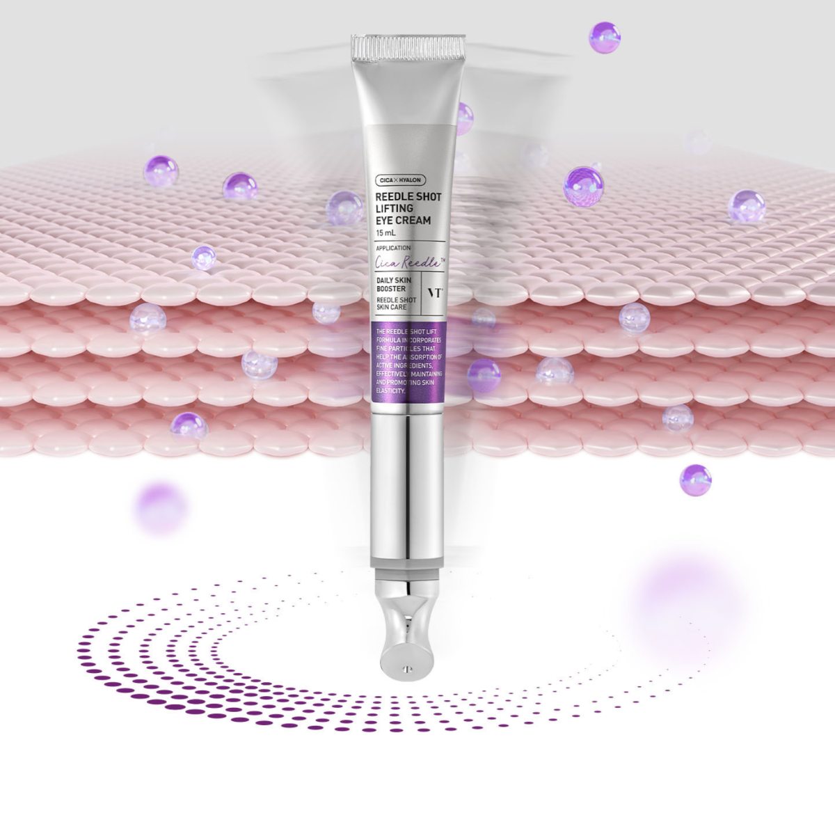 Продукт содержит запатентованный комплекс CicaReedle™ на основе вытяжки из центеллы азиатской и микроигл (спикул), он позволяет действующим активам проникать глубже в кожу, улучшает кислородный обмен и сокращает риск появления раздражения. Особая технология доставки VDS — главная особенность серии: активы распадаются на микрочастицы для более глубокого проникновения в эпидермис. Этот процесс повторяется трижды и размер молекул с каждым разом уменьшается, затем они трансформируются в липосомы, ядра которых содержат такие бустинг-компоненты, как эластин, коллаген и гиалуроновая кислота.